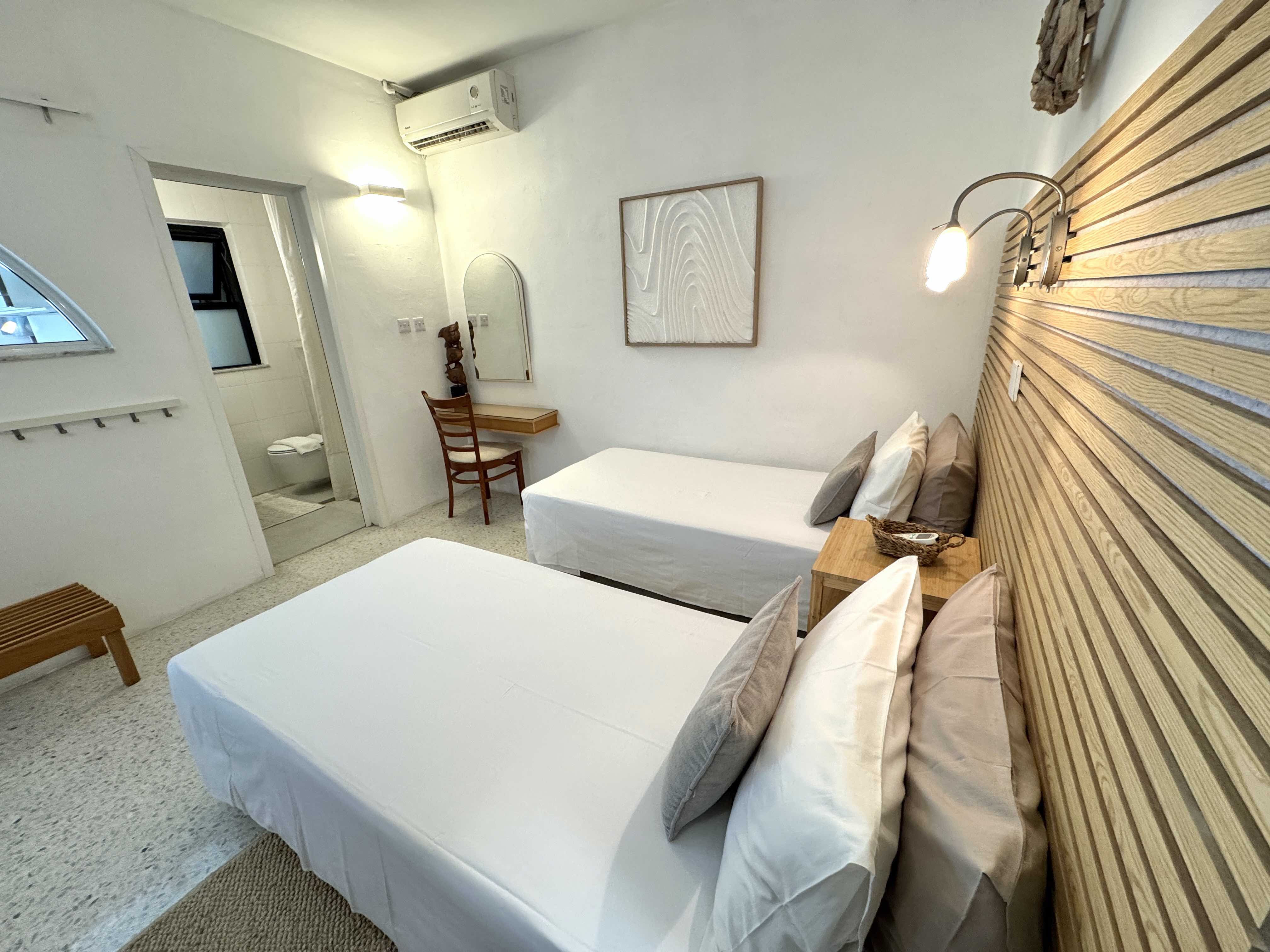 These apartments have 2 separate bedrooms, each with an en-suite shower/toilet room.