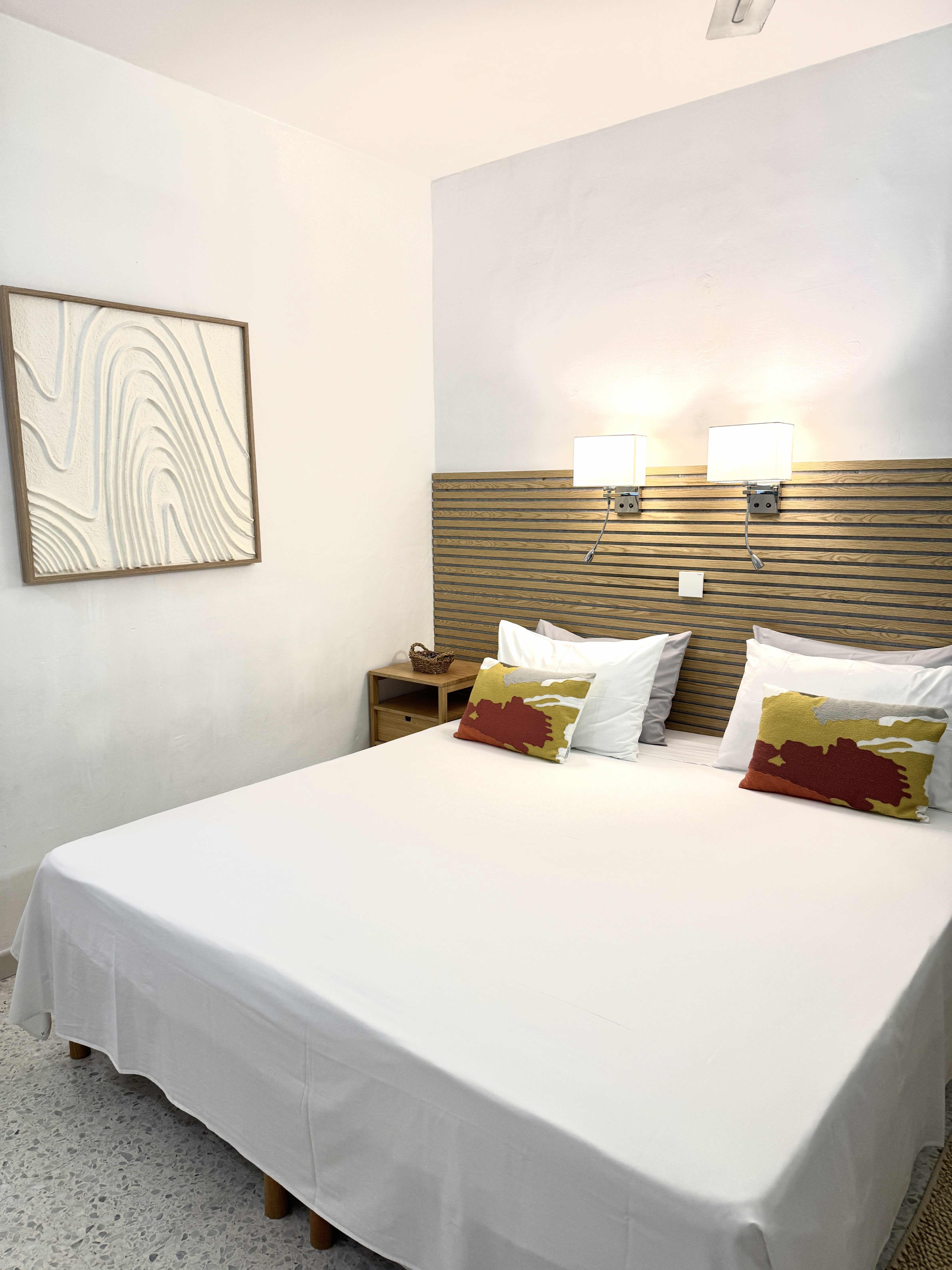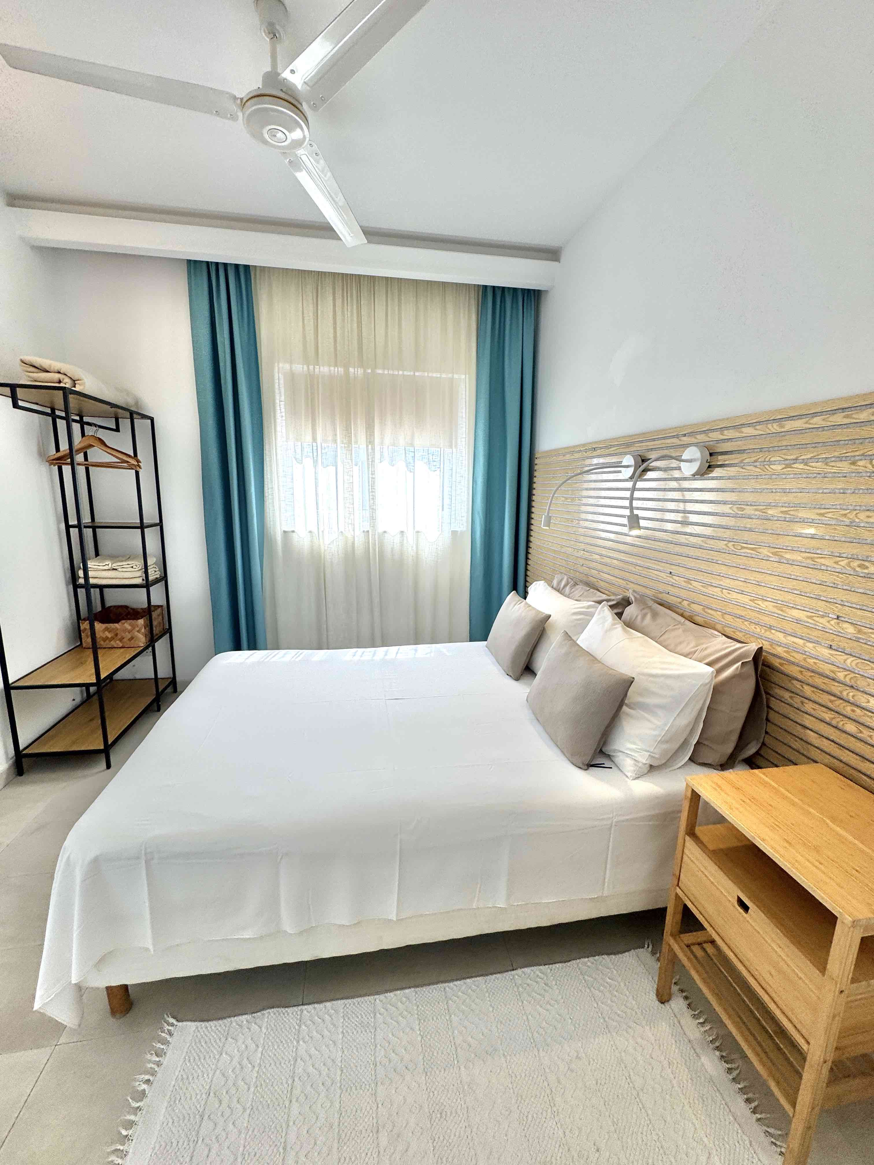 One bedroom has a double bed while the second bedroom can be set up with 2 twin beds or one large double bed .